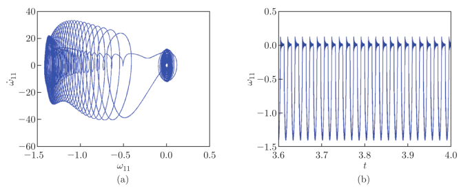 5時的周期運動:(a)相位圖和(b)時程圖。