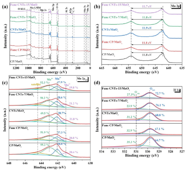 圖3 XPS光譜分析:(a) XPS總譜;(b) Mn 2p,(c) Mn 2p3/2,(d) O 1s。.png)