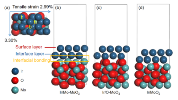 通過密度泛函理論計算和實驗研究,利用不同的界面化學鍵Ir-O、Ir-Mo和混合Ir-Mo/O,探討了MoO