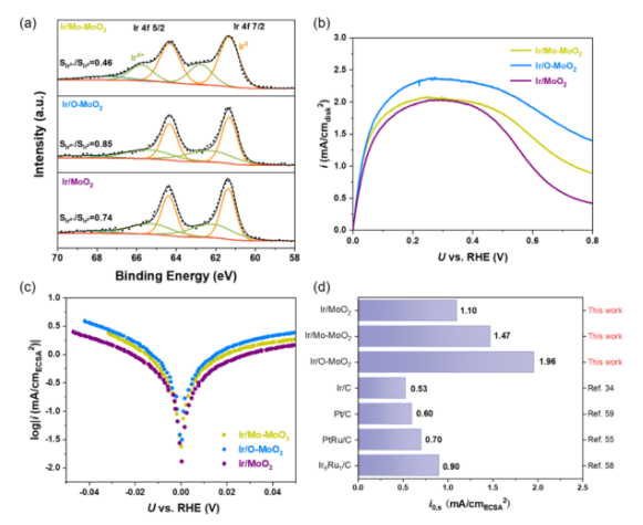 2負載的Ir催化劑在優(yōu)化氫氧化反應(HOR)活性中的調(diào)控機理。這里發(fā)現(xiàn), Ir/O-MoO