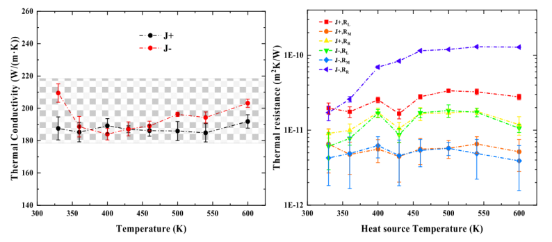 圖5. (a)石墨烯的導(dǎo)熱系數(shù)(b) R