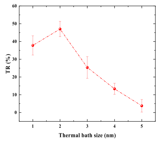 圖8. 不同熱浴尺寸下的TR率。