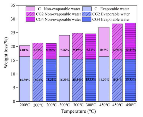 本文研究了在溫度為105℃、200℃、300℃和450℃時,含有氧化石墨烯(GO)團(tuán)聚體水泥漿的高溫性能。一般來說,在環(huán)境溫度下,加入GO可以細(xì)化氫氧化鈣的孔隙結(jié)構(gòu)和結(jié)晶尺寸,這有利于水泥漿體的熱阻。在本研究的熱處理過程中,發(fā)現(xiàn)GO團(tuán)聚體中的結(jié)合水可以忽略不計(通過失重分析)。GO團(tuán)聚體抑制水泥漿的孔隙結(jié)構(gòu)粗化。在300℃(接近水的臨界點(diǎn)),加入0.04%(重量)的氧化石墨烯時,孔隙結(jié)構(gòu)更細(xì),總孔隙度降低了8.5%。在溫度為200℃、300℃和450℃時,在水泥漿中加入0.04%的氧化石墨烯,其殘余抗壓強(qiáng)度分別比參考試樣高9.28%、12.63%和10.83%。