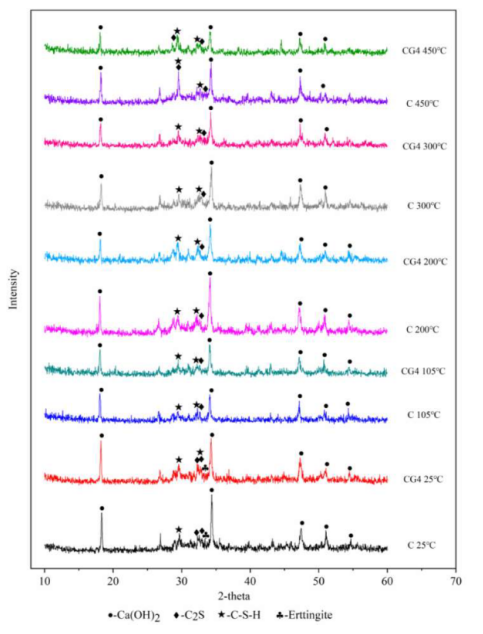 圖9. 高溫處理后C、CG2和CG4的殘余抗壓強(qiáng)度結(jié)果。