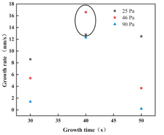 圖9. 石墨烯在PECVD過程中不同壓力下的生長速率。