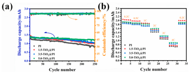 2@PI)復合隔膜。 發(fā)現(xiàn)添加的TiO