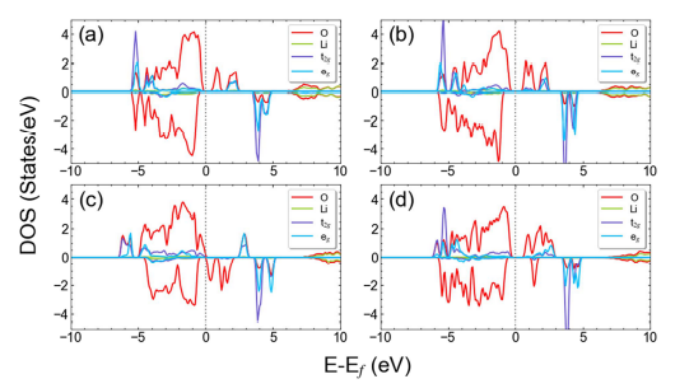 圖8. 當(dāng)(a) x = 1,(b) x = 2,(c) x = 3和(d) x = 4時(shí),由PBE+U計(jì)算出的Li