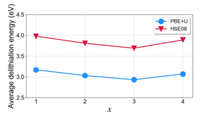 圖 7. PBE+U 和 HSE06 計(jì)算預(yù)測(cè)的 Li
