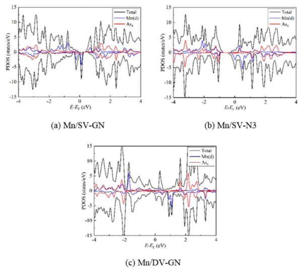 圖13. 三種不同Mn/GS吸附體系的PDOS吸附曲線。