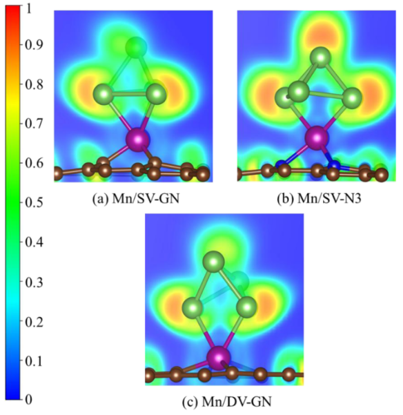 圖17. 三種不同Mn / GS吸附系統(tǒng)的電子局域函數(shù)。