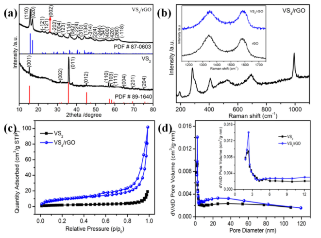 4。采用掃描電子顯微鏡(SEM)、透射電子顯微鏡(TEM)、X-射線衍射(XRD)、拉曼光譜、BET比表面積法(BET)、X-射線光電子能譜(XPS)和電化學方法對催化劑的結(jié)構(gòu)、形貌、組成和催化活性進行了檢測。結(jié)果表明,在催化過程中,VS