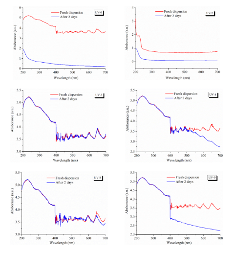 圖1.氧化石墨烯分散體的穩(wěn)定性(從左至右對應(yīng)樣品為UV-0 ~ UV-9)。