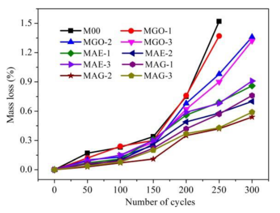 圖6. 質(zhì)量損失隨凍融次數(shù)的變化。