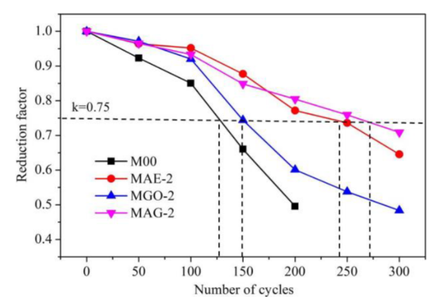 圖9. 折減系數(shù)與凍融次數(shù)的關(guān)系。