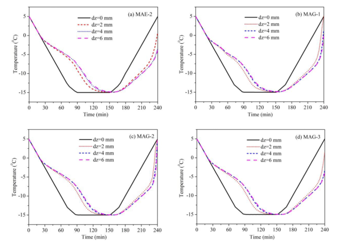 圖10. 不同尺度凍/融條件下加氣混凝土的孔隙壓力。