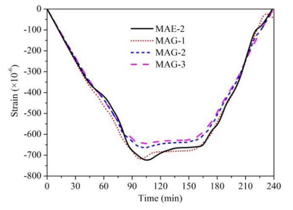 圖20. MAG-2模型不同時刻應(yīng)變的變化。