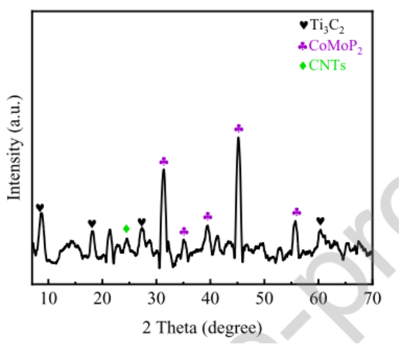 圖3. CoMoP2@Mxene@CNTs-3樣品的XRD譜圖。