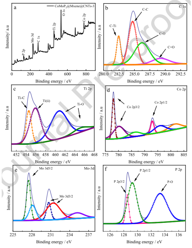 2@Mxene@CNTs-3復合CE和相應的Co, Mo, C, P和Ti元素的元素映射;(m) CoMoP