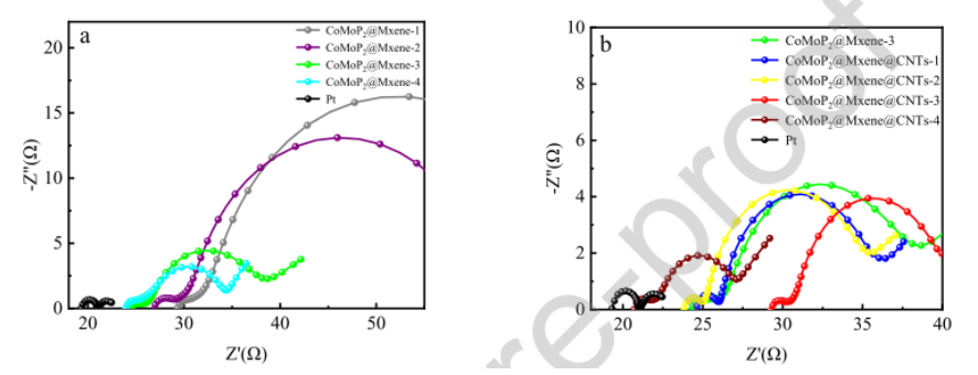 2和Mxene最佳比例的戰(zhàn)略混合材料,同時采用CNTs抑制Mxene層之間的團聚和重復疊加,從而在Mxene中形成柱狀效應。CoMoP