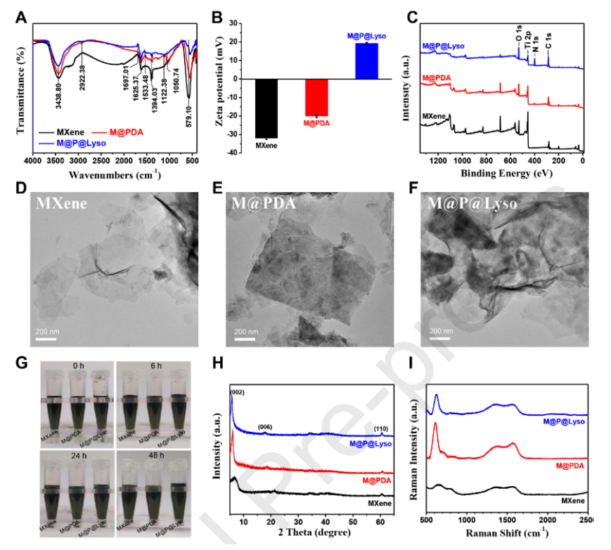 2TX MXene納米片以增強(qiáng)光熱效應(yīng)和性能耐久性,并通過分子間靜電親和將溶菌酶生物大分子固定在這樣的二維雜化界面上。集成的納米平臺(tái)(M@P@Lyso)不僅實(shí)現(xiàn)了對(duì)局部熱的精確控制,還實(shí)現(xiàn)了對(duì)負(fù)載溶菌酶生物催化的光響應(yīng)性上調(diào),光熱轉(zhuǎn)換效率最高達(dá)46.88%。因此,體外和體內(nèi)抗菌實(shí)驗(yàn)表明,M@P@Lyso能有效抑制耐甲氧西林金黃色葡萄球菌的增殖,加速小鼠傷口消毒,且生物毒性很小。M@P@Lyso的突出抗菌活性歸因于光增強(qiáng)的溶菌酶活性,輔助由局部輕度高溫引起的細(xì)菌死亡和來自M@PDA的物理破壞。這項(xiàng)工作示范了通過刺激響應(yīng)性酶納米平臺(tái)解決細(xì)菌耐藥性威脅的方法。