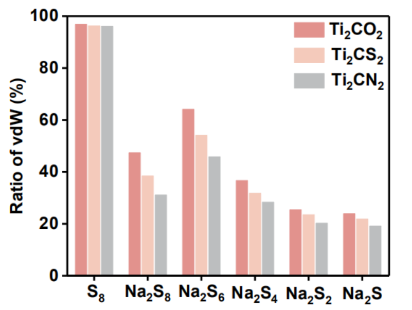 2表面吸附的各種NaPSs的vdW相互作用比Ti