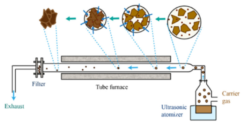 圖2. 超聲波噴霧熱解系統(tǒng)原理圖。
