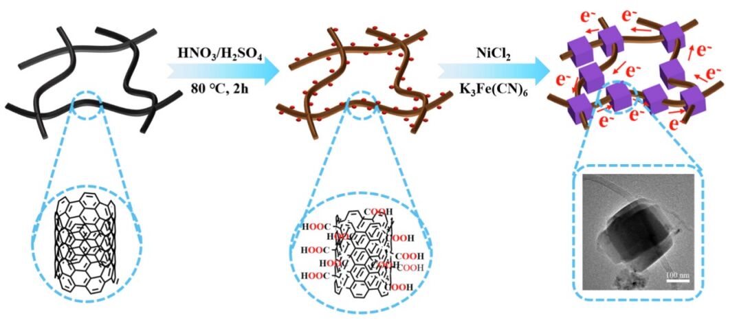 Figure 1. NiHCF/CNT 復(fù)合材料制備示意圖。