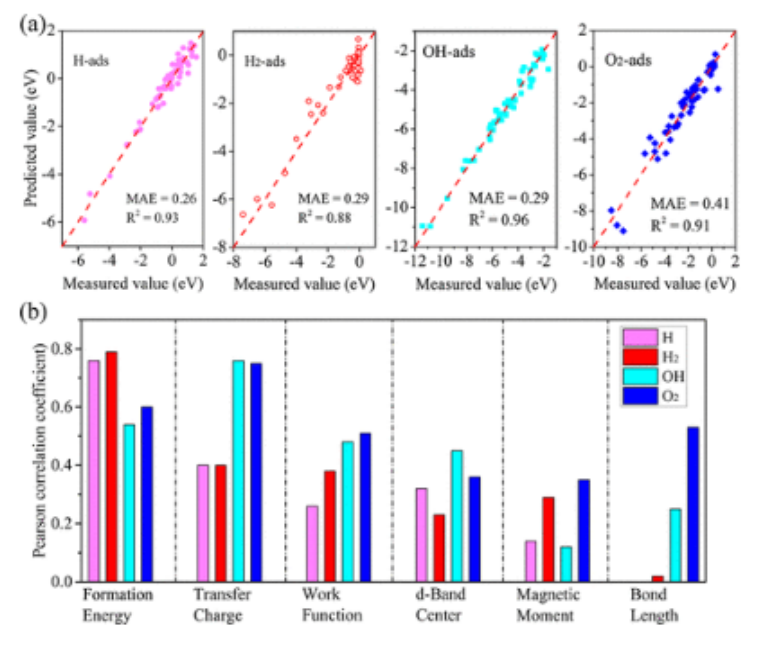 單原子催化劑具有結(jié)構(gòu)和活性可調(diào)的特點(diǎn),在能源和環(huán)境領(lǐng)域的應(yīng)用引起了人們的廣泛關(guān)注。在這里,我們提出了單原子催化二維石墨烯和電子異質(zhì)結(jié)構(gòu)的第一性原理研究。電化層中的陰離子電子氣使大量的電子轉(zhuǎn)移到石墨烯層,轉(zhuǎn)移的程度可以通過選擇電子轉(zhuǎn)移來控制。電荷轉(zhuǎn)移調(diào)節(jié)了單個金屬原子的d軌道電子占有率,提高了析氫反應(yīng)和氧還原反應(yīng)的催化活性。吸附能EADs和電荷變化ΔQ之間的強(qiáng)相關(guān)性表明,界面電荷轉(zhuǎn)移是異質(zhì)結(jié)構(gòu)催化劑的關(guān)鍵催化參數(shù)。多項(xiàng)式回歸模型證明了電荷轉(zhuǎn)移的重要性,并準(zhǔn)確地預(yù)測了離子和分子的吸附能。本研究為利用二維異質(zhì)結(jié)構(gòu)獲得高效的單原子催化劑提供了一種策略。