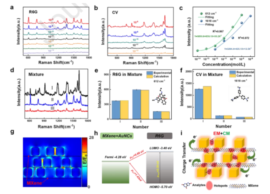圖5. MXene/AuNCs-FOTS平臺的SERS性能及三重增強機制。