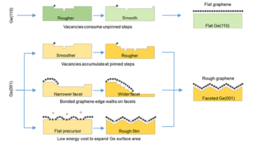 圖8.控制Ge(110)和Ge(001)對石墨烯生長的響應(yīng)的因素。