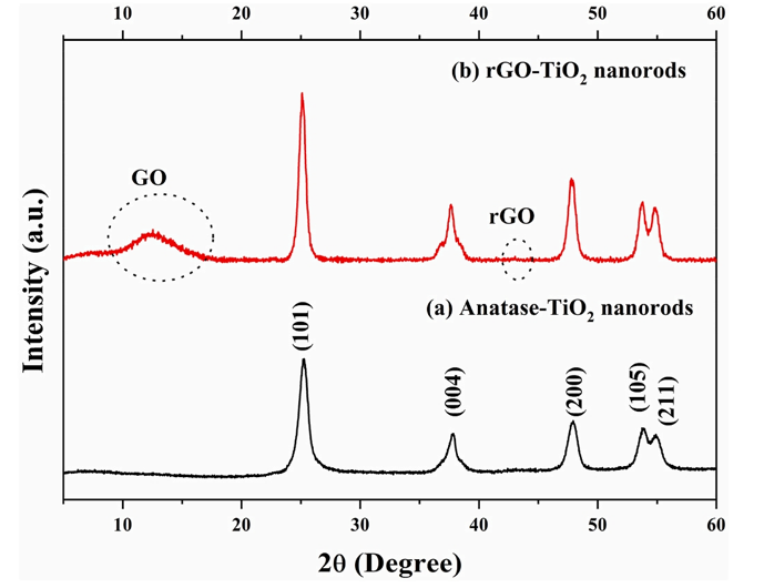 2與GO和rGO峰呈銳鈦礦相,形態(tài)表征表明,TiO