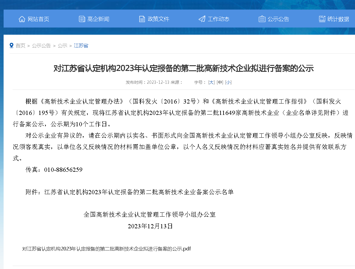 江蘇省2023年第八批入庫科技型小企業(yè)通知文本
