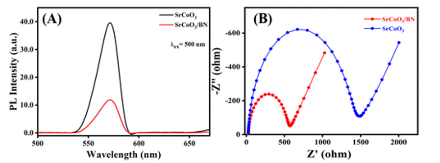3/BN催化劑的光致發(fā)光光譜(A)和EIS(B)。