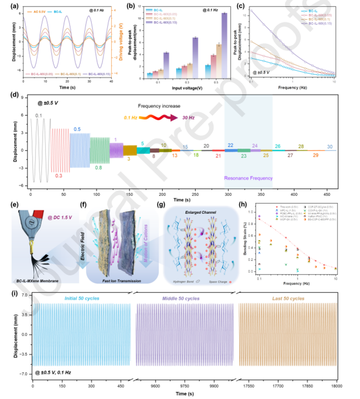 圖5。BC-IL-MXene驅(qū)動器的驅(qū)動性能。