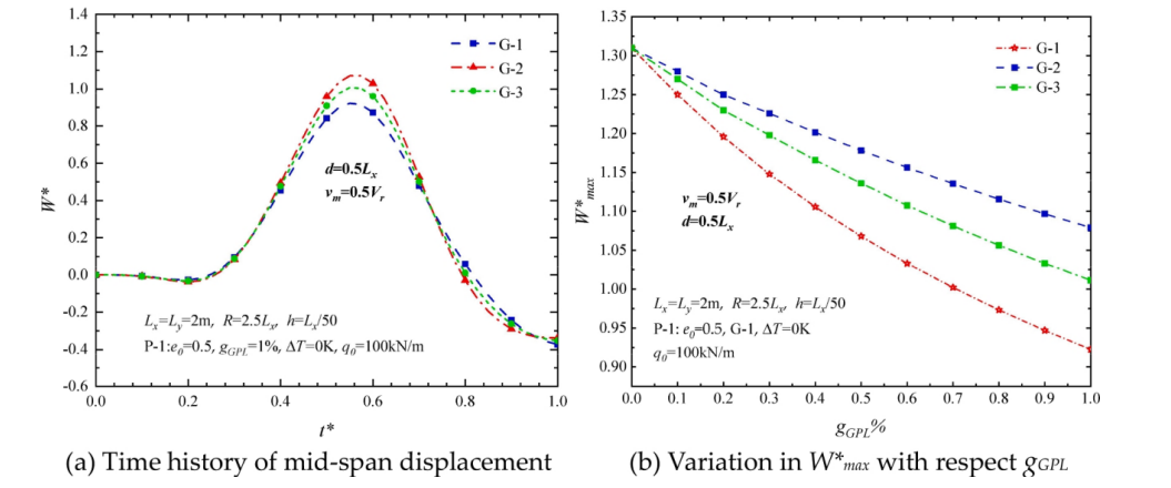 相關研究成果由北京工業(yè)大學材料與制造學部、機械結構非線性振動與強度北京市重點實驗室、廣西大學力學系Wei Zhang等人于2023年發(fā)表在Thin-Walled Structures (https://doi.org/10.1016/j.tws.2023.111180 )上。原文:Nonlinear transient thermo-mechanical responses of porous graphene platelet-reinforced cylindrical panels under moving distributed loads