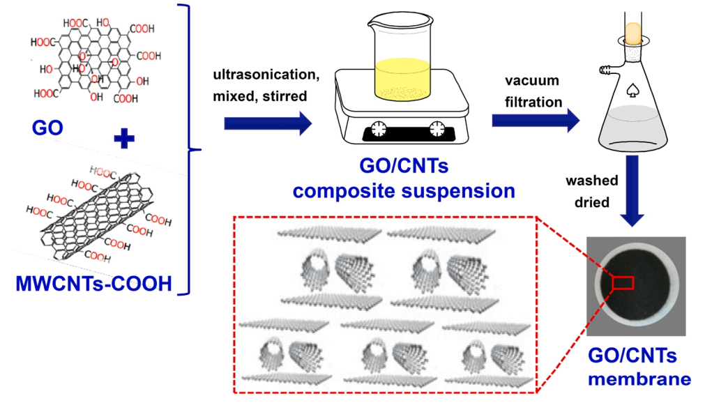 Fig 1. GO/CNTs復(fù)合膜制備過程示意圖。