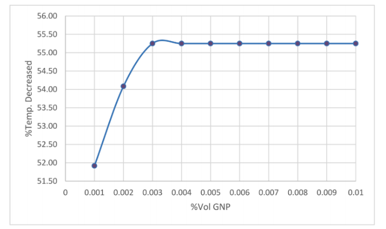 電池技術是向零排放交通轉(zhuǎn)變的主要推動力。然而,該技術廣泛應用的一個主要障礙是需要將電池的溫度保持在27℃的標準溫度。傳統(tǒng)的方法是乙二醇和水的混合物通過電池組循環(huán)冷卻,但這種方法是不夠的。相比之下,使用石墨烯納米片(GNPs)可以改善傳熱,降低電池單元的溫升。在本研究中,使用含有不同濃度GNPs(從0.001 vol%到0.01 vol%)的冷卻劑對定制電池組進行了模擬,以評估其降低工作溫度的有效性。采用拉格朗日方法對耦合歐拉連續(xù)相流體的離散相粒子進行了跟蹤。結(jié)果表明,純EG/Water冷卻劑使系統(tǒng)的峰值溫度降低了16.67%(60℃ - 50℃),當加入0.03 vol% GNP時,峰值溫度進一步降低到26.85℃(降低55.25%)。與純混合物相比,僅添加0.001 vol%的GNPs,模型中峰值溫度的差異從10℃增加到31.15℃。更高的導熱系數(shù),更大的表面積和更高的粒子比熱容均歸因于這種冷卻性能的增強。