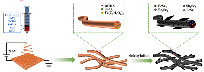 圖1. FeSbSe-NGCNFs復合材料制備過程示意圖。