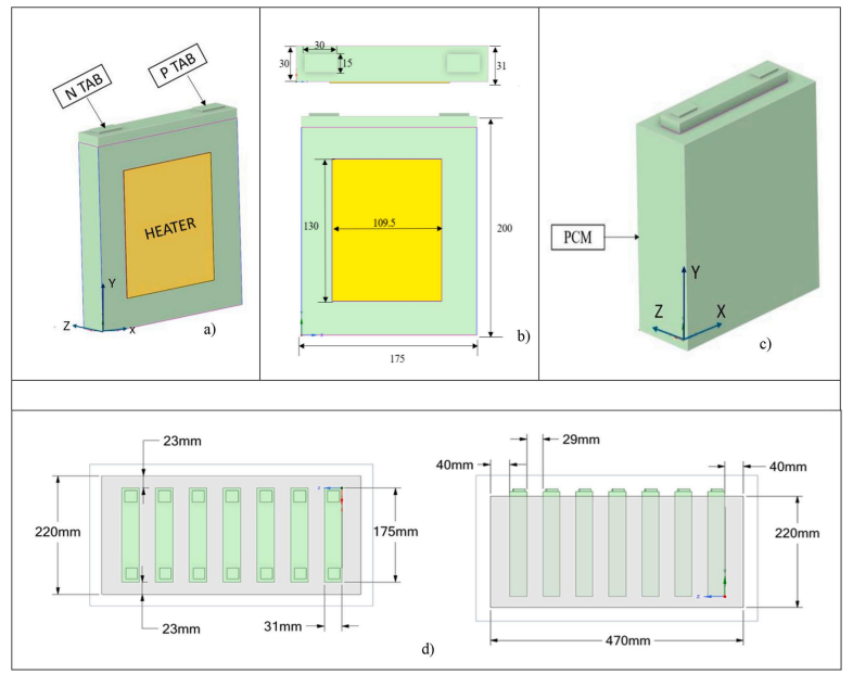 d) 采用浸沒式CPCM的7串聯(lián)電池包尺寸圖