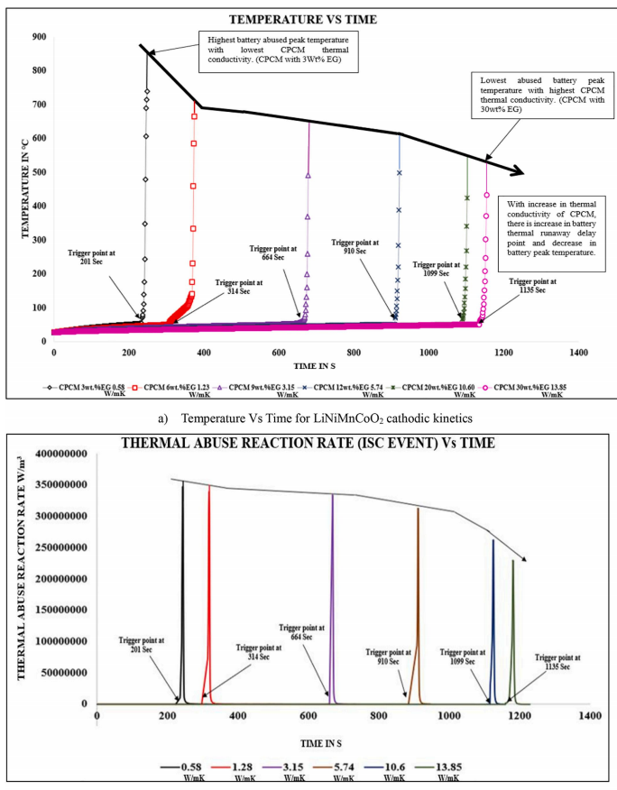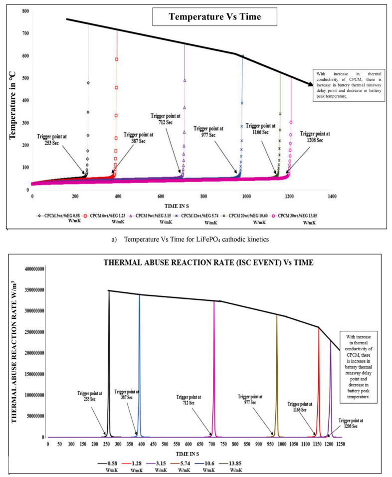 通過使用復(fù)合相變材料(PCM)集成層可有效延遲熱失控發(fā)生。然而,當前傳統(tǒng)PCM的熱導率較低,導致延遲熱失控觸發(fā)點的穩(wěn)定性不足。這一問題可通過石墨烯增強復(fù)合相變材料(CPCM)改善,其中添加的膨脹石墨(EG)比例決定了CPCM熱物理性能(尤其是熱導率)的提升。