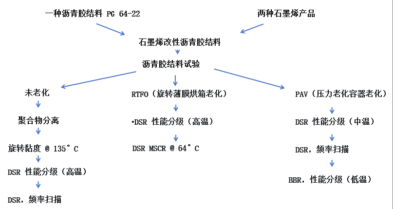 Superpave性能等級(PG)體系是當(dāng)前瀝青鋪路行業(yè)用于選擇瀝青結(jié)合料的規(guī)范標(biāo)準(zhǔn)。它被美國聯(lián)邦公路運輸部以及幾乎所有美國各州交通部所采用。這是一套基于瀝青結(jié)合料流變特性,并結(jié)合鋪裝路面的當(dāng)?shù)貧夂蚝秃奢d條件而制定的性能相關(guān)規(guī)范。在該體系中,每種瀝青結(jié)合料都用兩個數(shù)字進(jìn)行分級,分別代表該結(jié)合料能分別抵抗車轍和低溫開裂的最高路面溫度和最低路面溫度。例如,PG 64-22 結(jié)合料適用于平均七天最高路面溫度為 64°C 或更低、預(yù)期最低路面溫度為 -22°C 或更高(負(fù)值較?。┑牡貐^(qū)。通常,在給定的交通和環(huán)境條件下,PG范圍更寬的瀝青結(jié)合料往往能提供更好的路面性能。聚合物分離是所有類型聚合物改性瀝青的一項重要性能指標(biāo)。該測試旨在確定聚合物(或添加劑)在靜態(tài)加熱儲存條件及隨后的冷凍調(diào)節(jié)期后,從基礎(chǔ)瀝青結(jié)合料中分離的傾向。測試結(jié)果可反映研究中評估的石墨烯與瀝青結(jié)合料之間的相容程度。