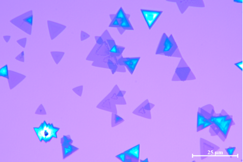 1) 單層離散分布的三角狀單晶晶粒,三角邊長一般是幾十至一百微米。